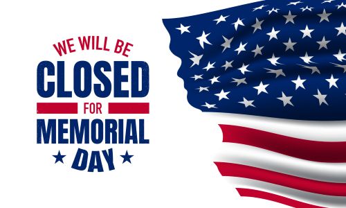 We will be closed for the Memorial Day Holiday.